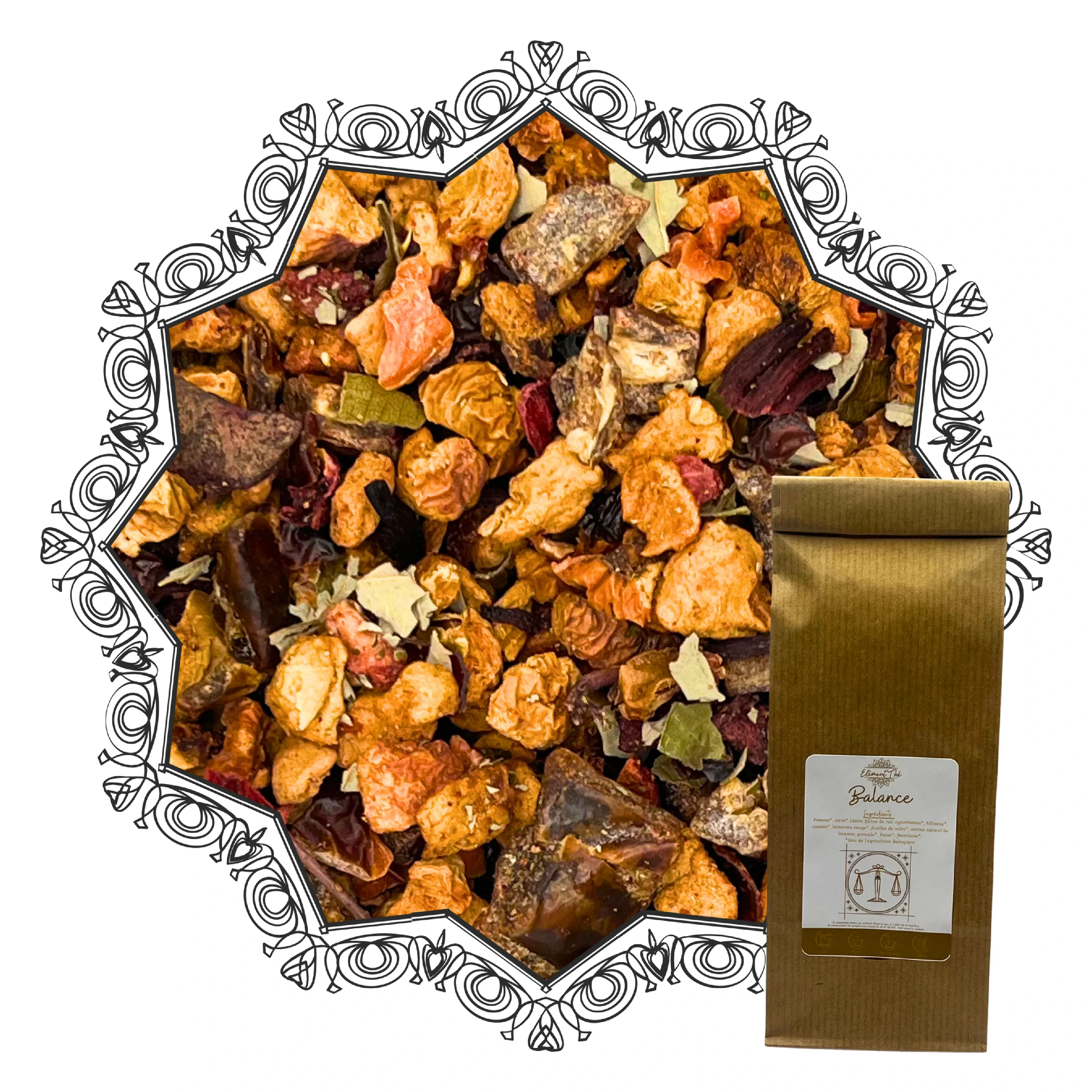 Infusion Balance fruitée est une création élégante et intuitive, inspirée par l’idée d’harmonie, de justesse et de raffinement. Pensée comme une tasse “équilibrée”, elle propose un profil gourmand mais subtil, où les fruits se répondent avec délicatesse. Dès les premières notes, on retrouve une signature douce, poétique, et une sensation de plaisir mesuré — à l’image de la Balance, amoureuse du beau et du bon.