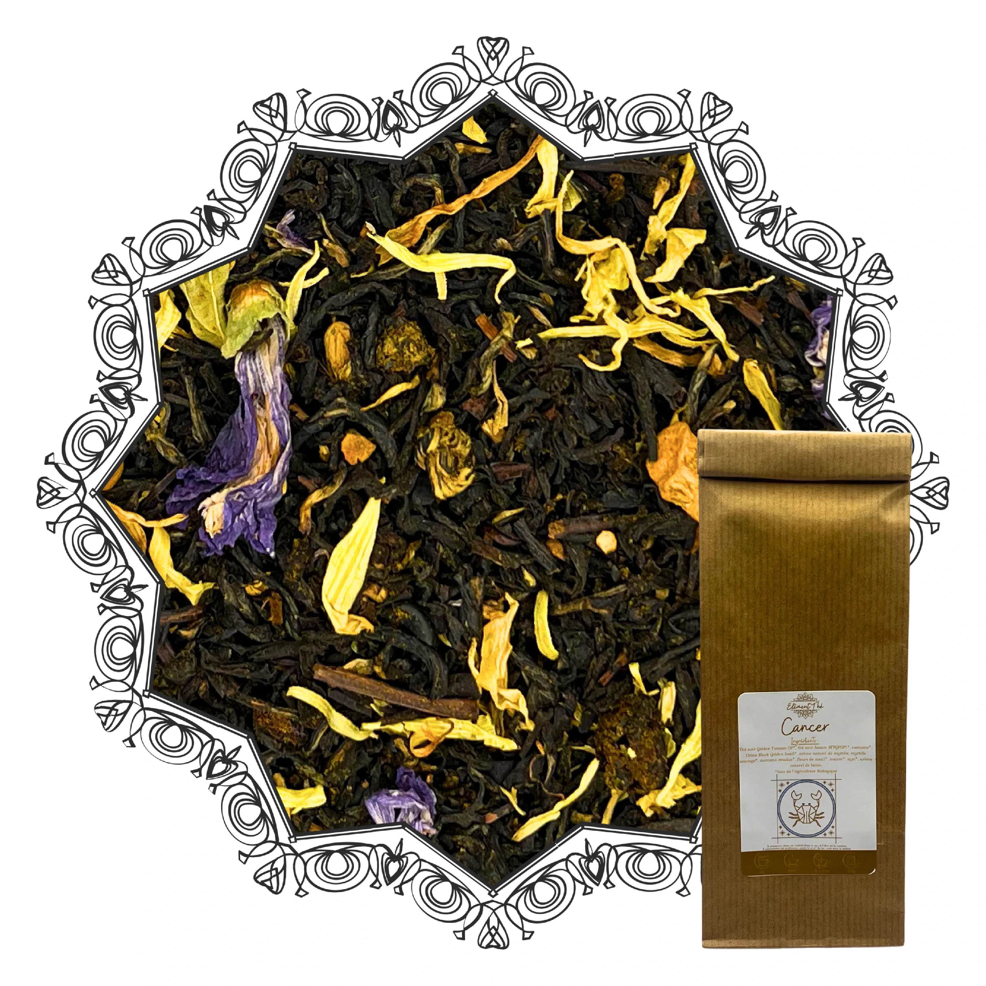 Les ingrédients sont issus de l’agriculture biologique (ingrédients bio). Le thé Cancer bio est ainsi une tasse profonde et apaisante, construite sur des thés noirs d’exception et des notes de baies sauvages, pour retrouver la douceur intérieure et la bienveillance du cocon Cancer.