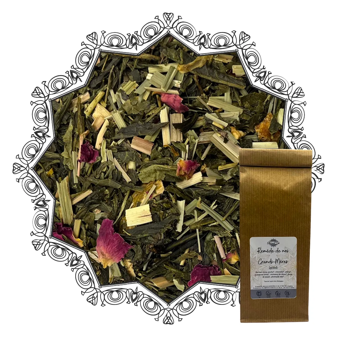 Les ingrédients sont issus de l’agriculture biologique (ingrédients bio). Remède de nos Grands-Mères est ainsi un thé citronnelle citron citronné, floral et léger, porté par le Sencha, le citron et la citronnelle, dans l’esprit clair et aérien de l’élément Air.